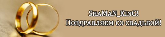 Администрация Проекта поздравляет игрока ShaMaN_KinG со свадьбой! Обычно мы столь официально поздравляем только пары, которые познакомились в игре, но мы просто не смогли не оценить трудовой героизм Шамана, вошедшего в игру в 4-е утра после торжественных мероприятий (!!!). Администрация Проекта приняла решение наградить игрока ShaMaN_KinG модулем "Золотая сфера". на память. Долгих и счастливых лет в браке! Читать